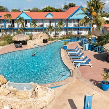 If you have been thinking about escaping to the captivating depths of crystal-clear waters, where an underwater world of enchantment awaits you, Bonaire is the place for you. Whether you are searching for Batfish at the Salt Flats or hunting octopuses below the Divi Dock, you will surface one happy diver. You can scuba dive until you grow gills in the calm water off of Divi Flamingo, lounge around all day by one of the two pools, relax with a massage, walk to town, go shopping, go to Gio's Gelateria, take a drive to see the flamingos, take a windsurfing lesson, or just do nothing at all in your spacious deluxe oceanfront room.